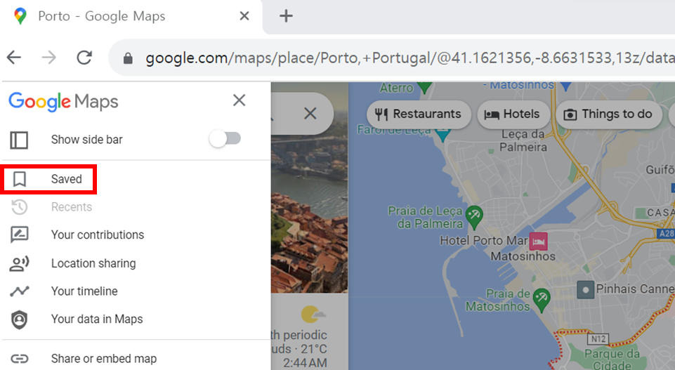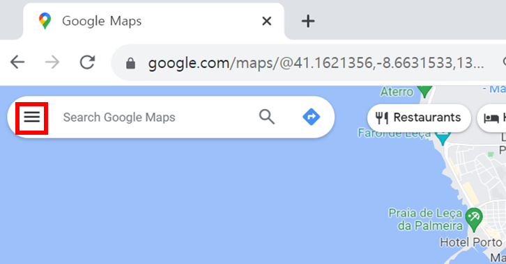 1. 먼저 구글맵에 들어가서 로그인을 한 후, 왼쪽 상단의 가로줄 3개 표시를 누릅니다.