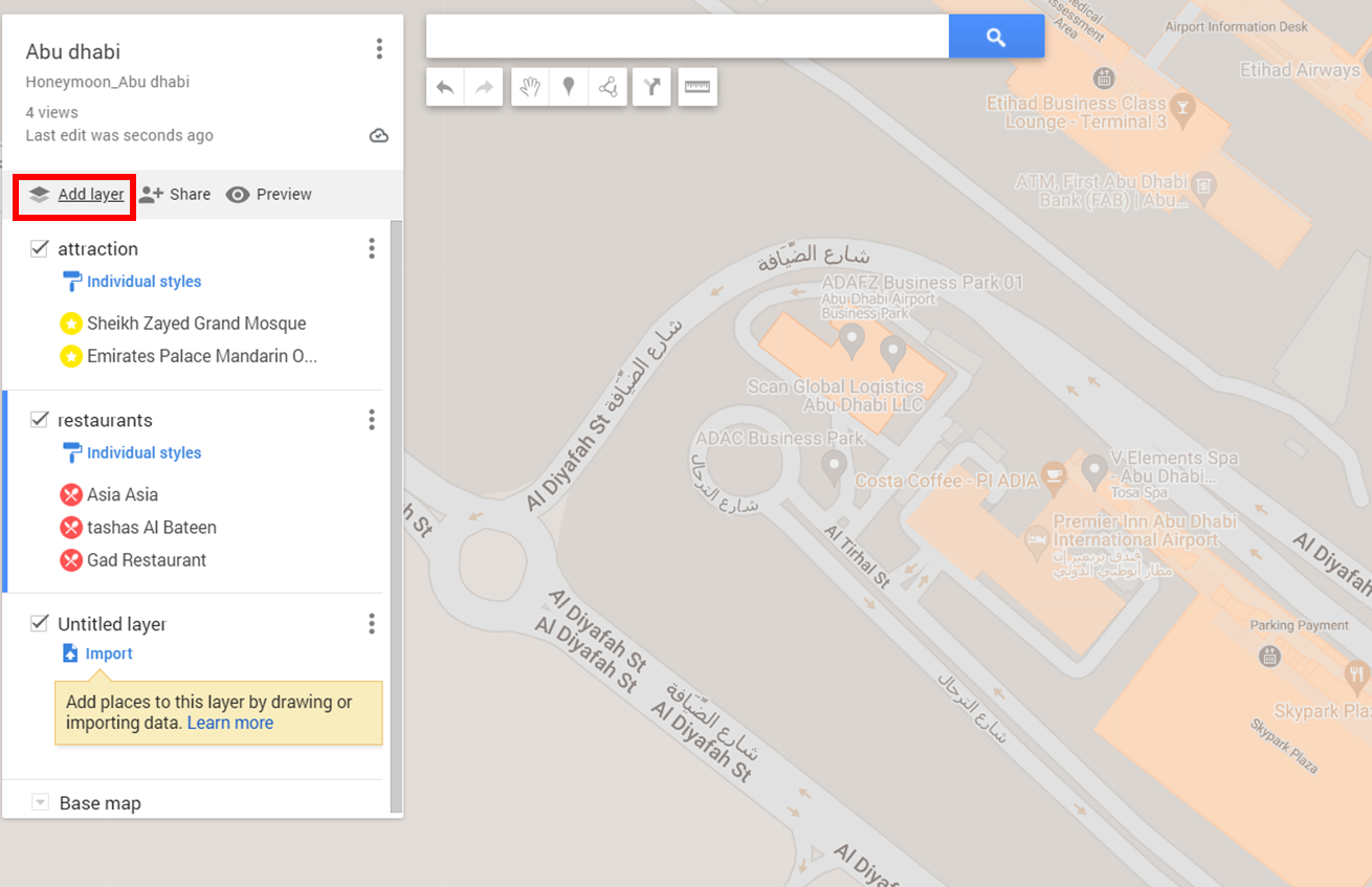 * 저는 이미 관광지와 식당은 만들어 놓은 상태입니다. 처음들어가면 아무것도 없이 untitled layer만 뜹니다.