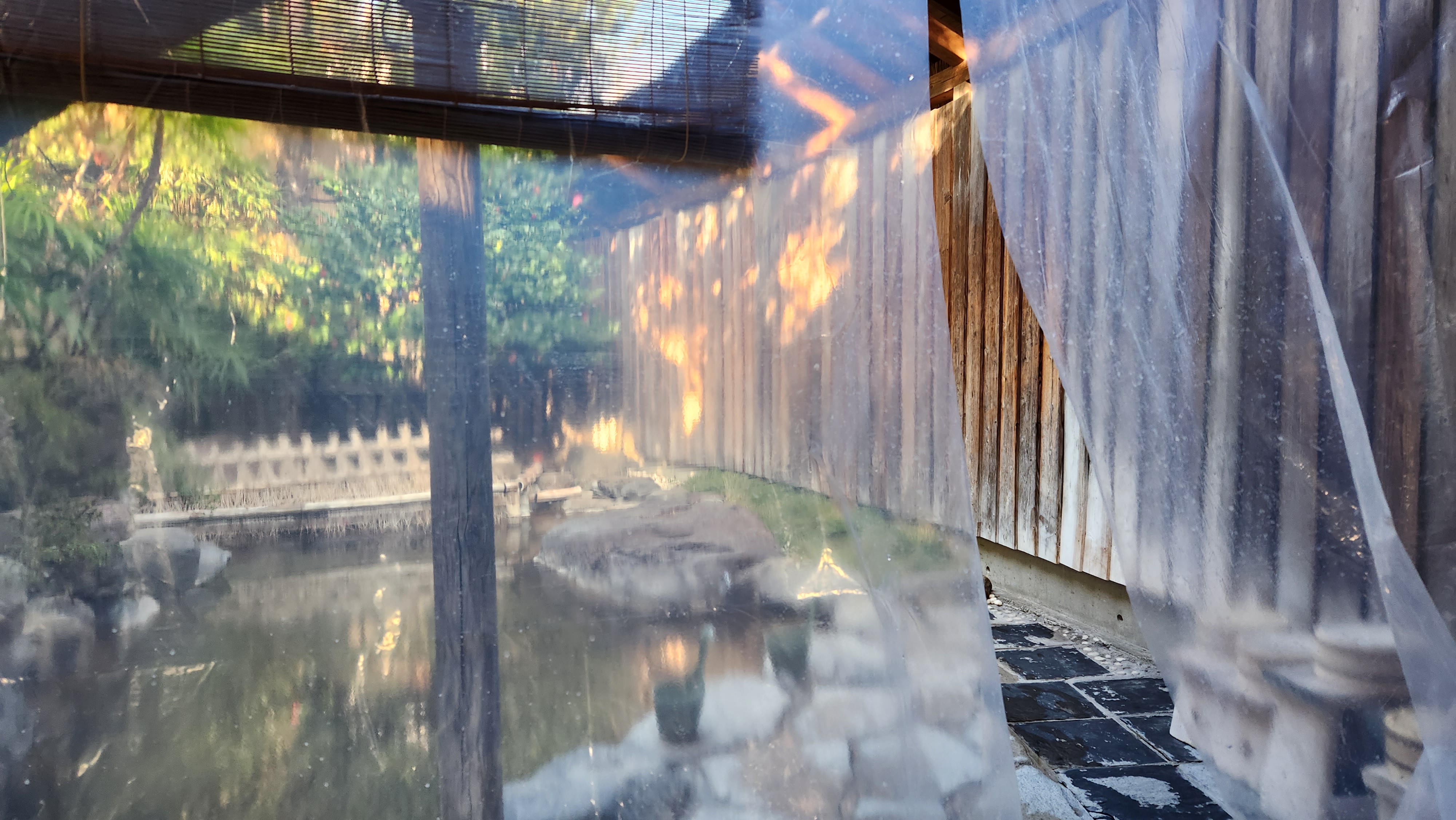 그리고 마지막으로 노천온천 한 번 더! 밤에 보는 노천탕과 아침에 보는 노천탕은 또 다른 느낌이더라고요.