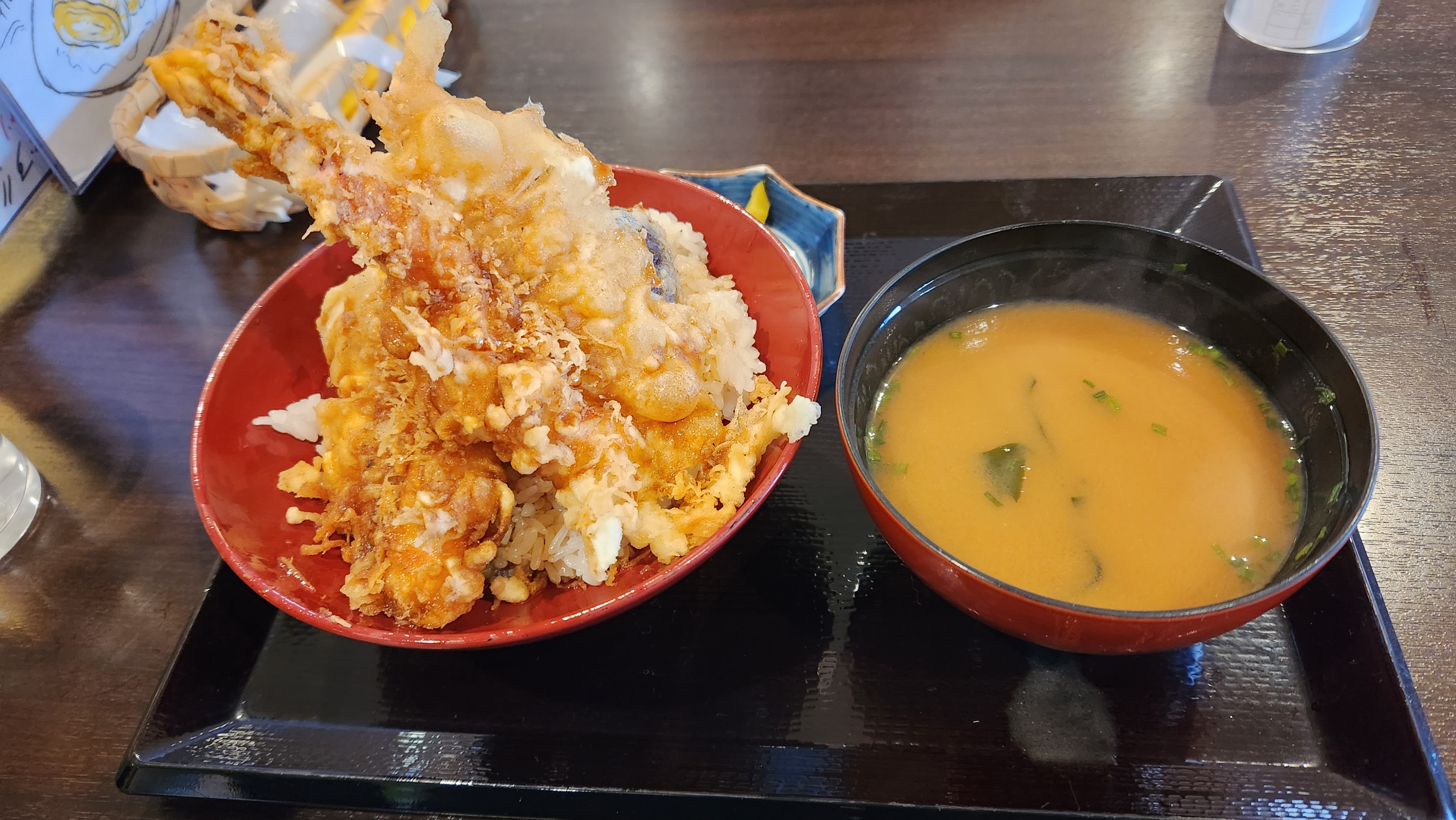 저는 텐푸라 덮밥을 시키고 친구는 지라시덮밥을 주문했습니다.