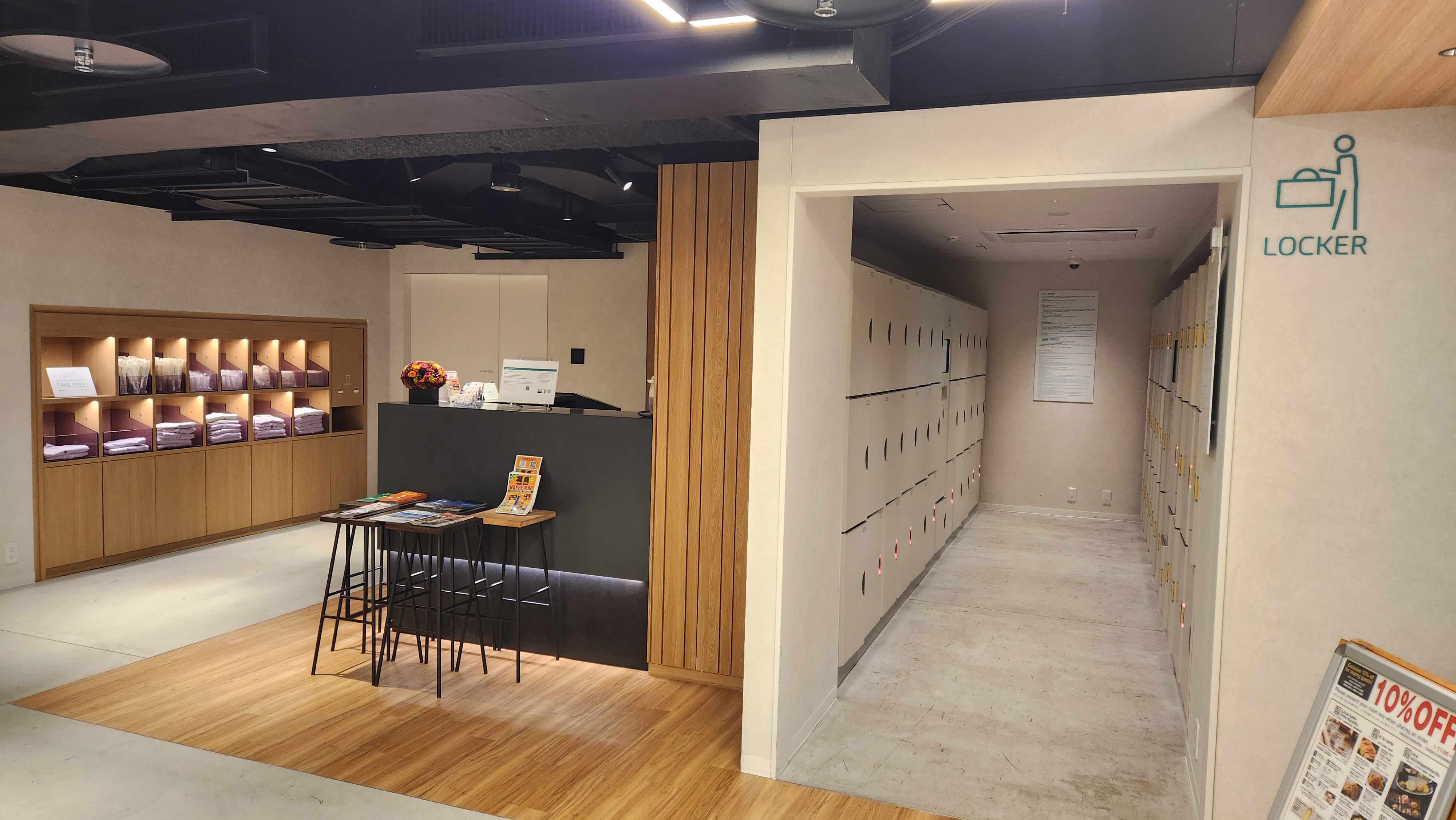 오른쪽은 물품보관함인데 유료로 사용할 수 있는 것 같아요.
