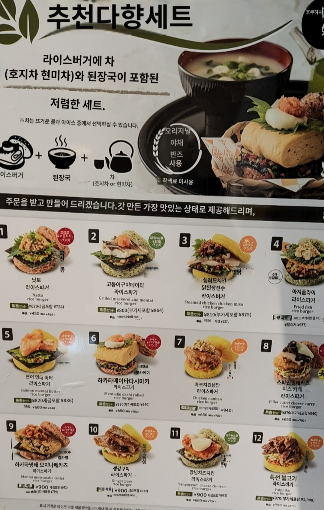 메뉴판 & 라이스 버거 메뉴판 (파파고로 돌린 결과)입니다.