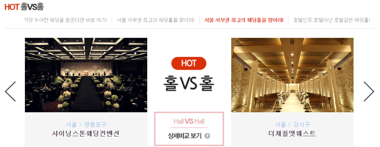 고려사항이 정해지면 조건에 맞는 예식장을 찾아서 방문예약을 해야 하는데 예식장을 하나하나 찾아서 살펴보고 전화하는 게 또 쉽지 않거든요. 이때 아이홀이란 페이지가 사용하기 좋은 것 같아요. https://www.ihall.co.kr/hallvshall