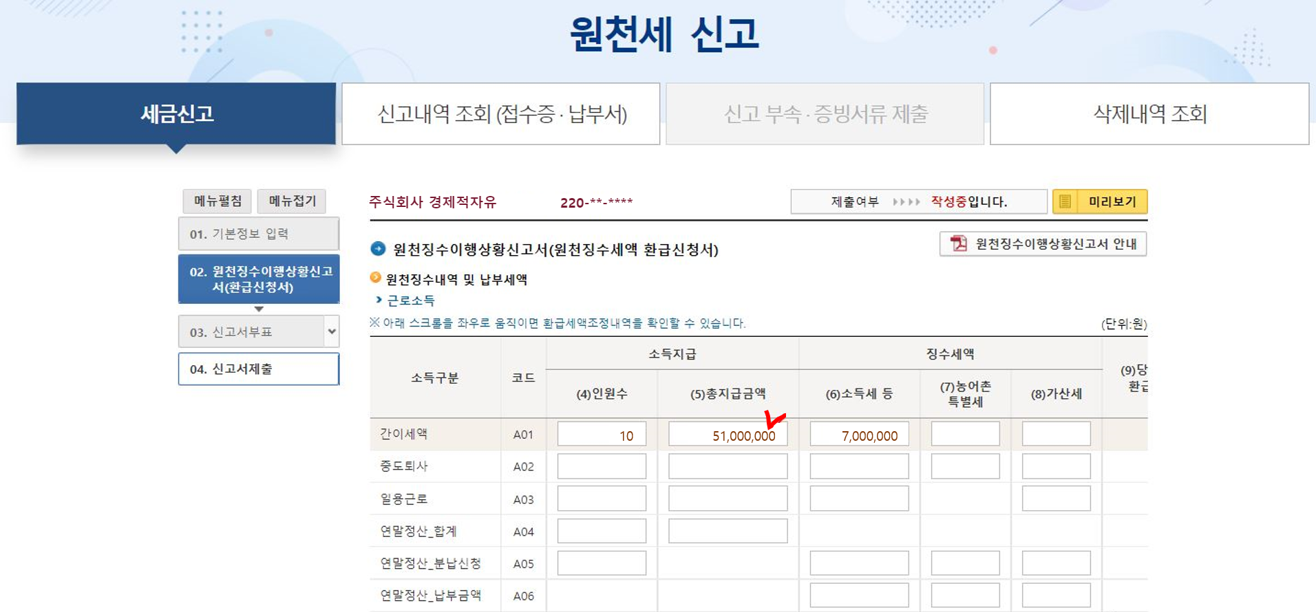 원천세 신고를 이미 이 달 초에 끝냈는데, 총지급액을 잘못 신고했어요 ㅠㅠ 세액에 변동이 없긴 한데....