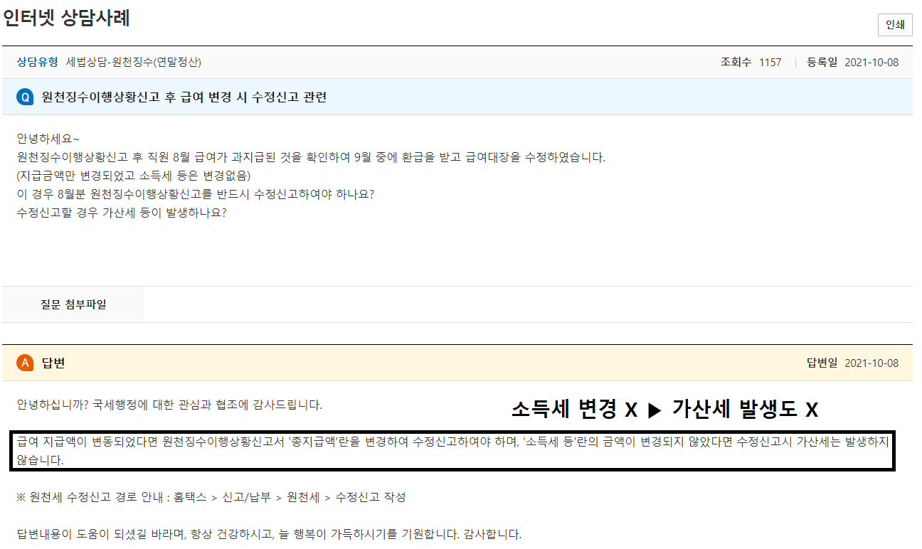 나의 결론: 세액에 변동이 없으면 가산세는 나오지 않으나 수정신고는 진행해야겠다.