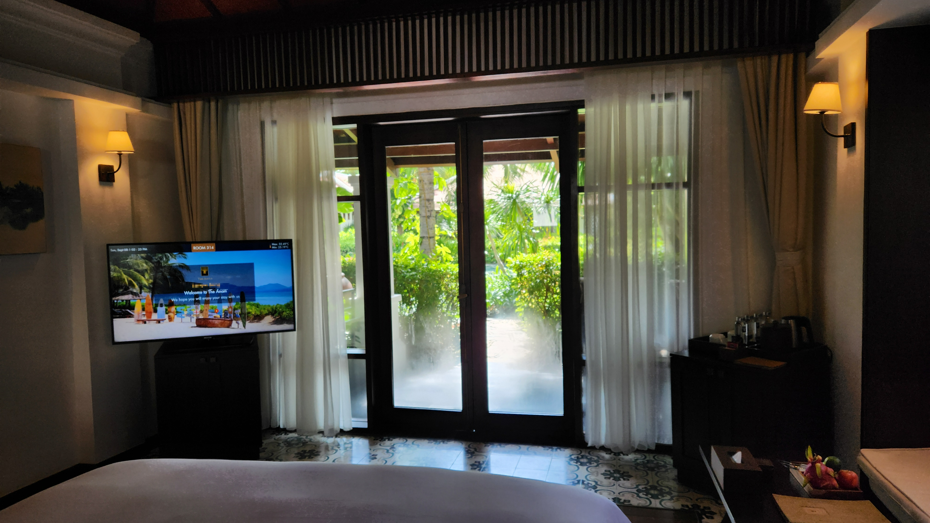 저 유리문을 열면 밖에 라군풀로 바로 갈 수 있어요! 라군풀에서 놀기 너무나도 좋은 위치였습니다.