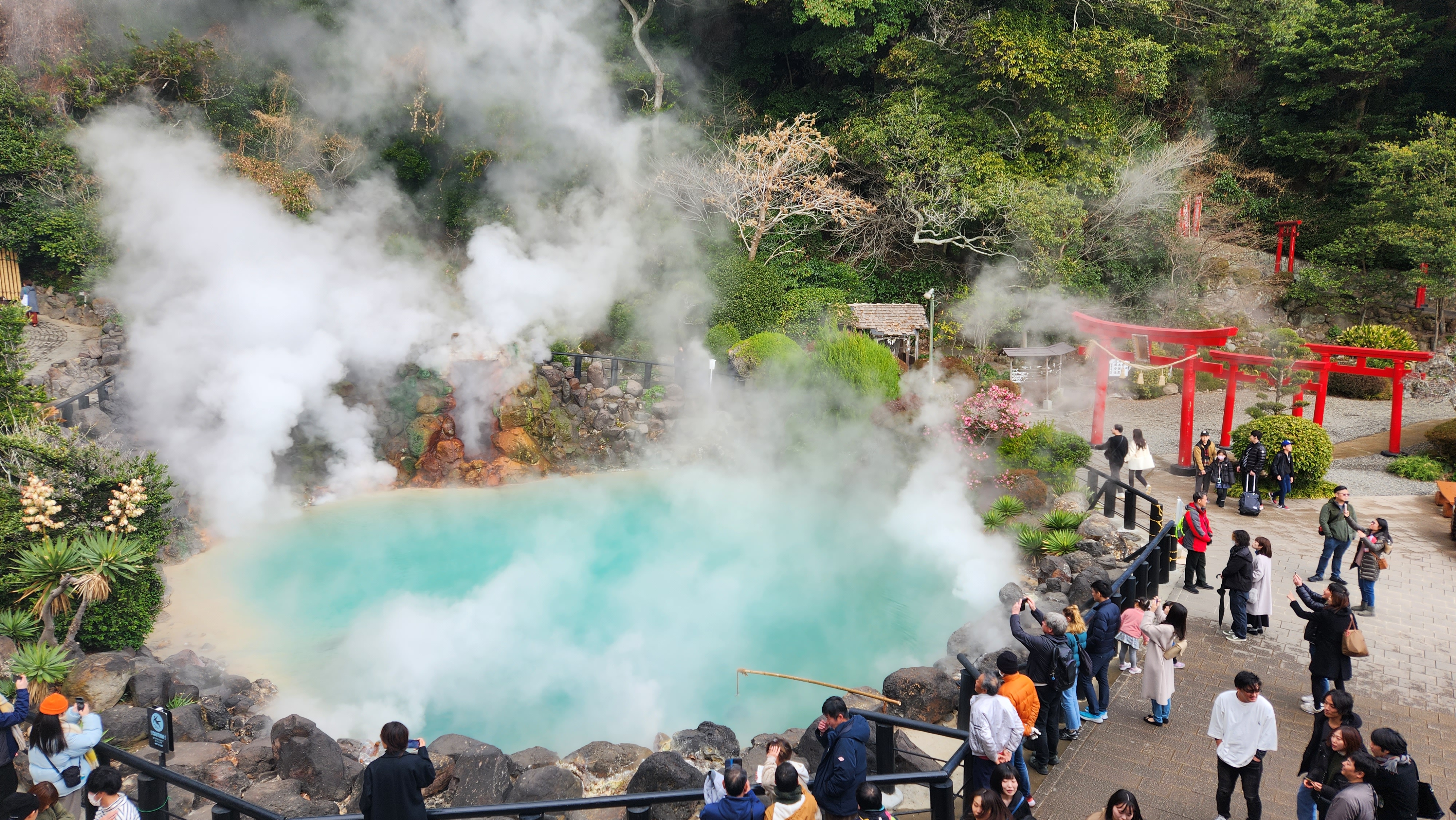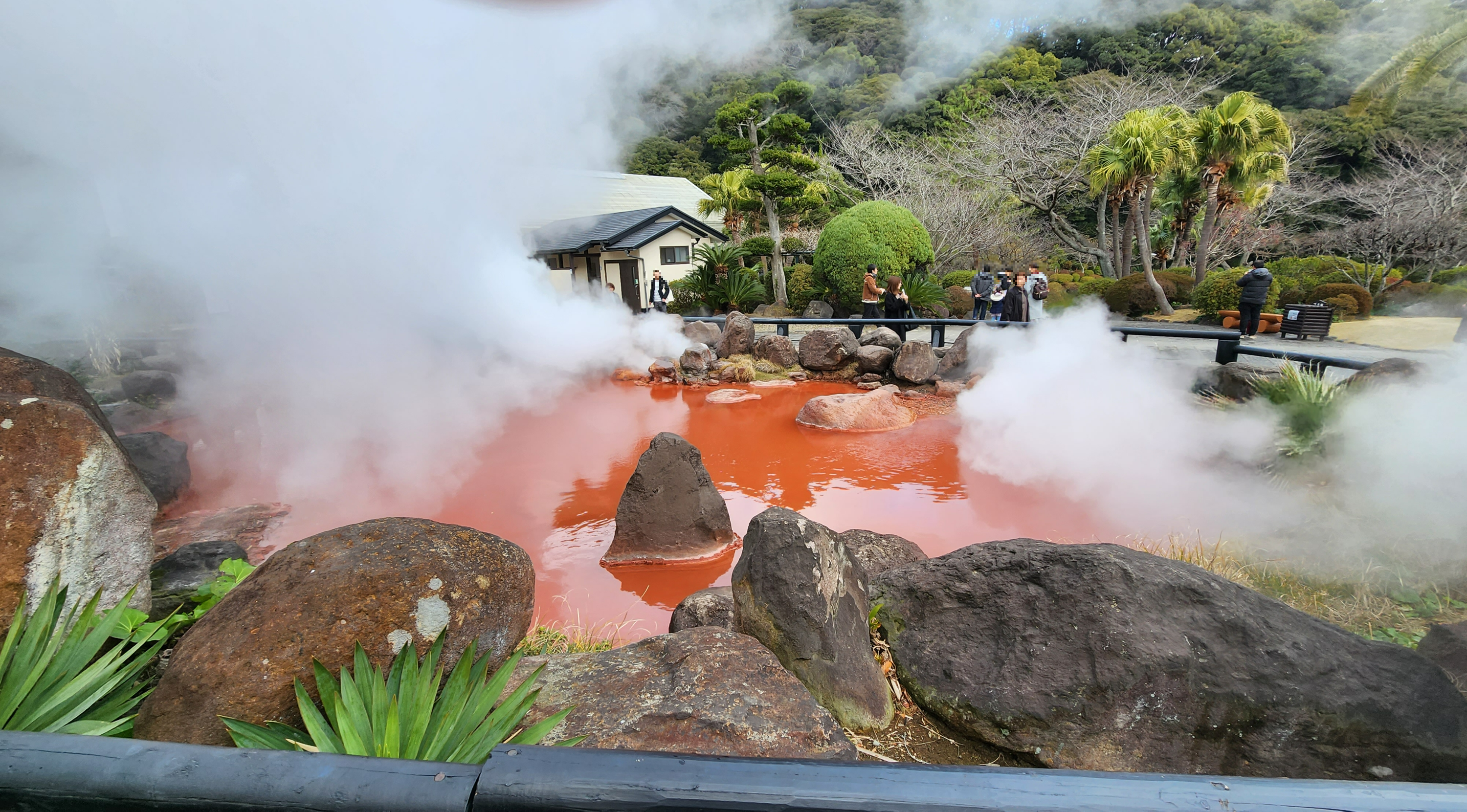오후에는 칸나 와로 돌아와 온천관광지 중 바다 지옥을 구경했어요.