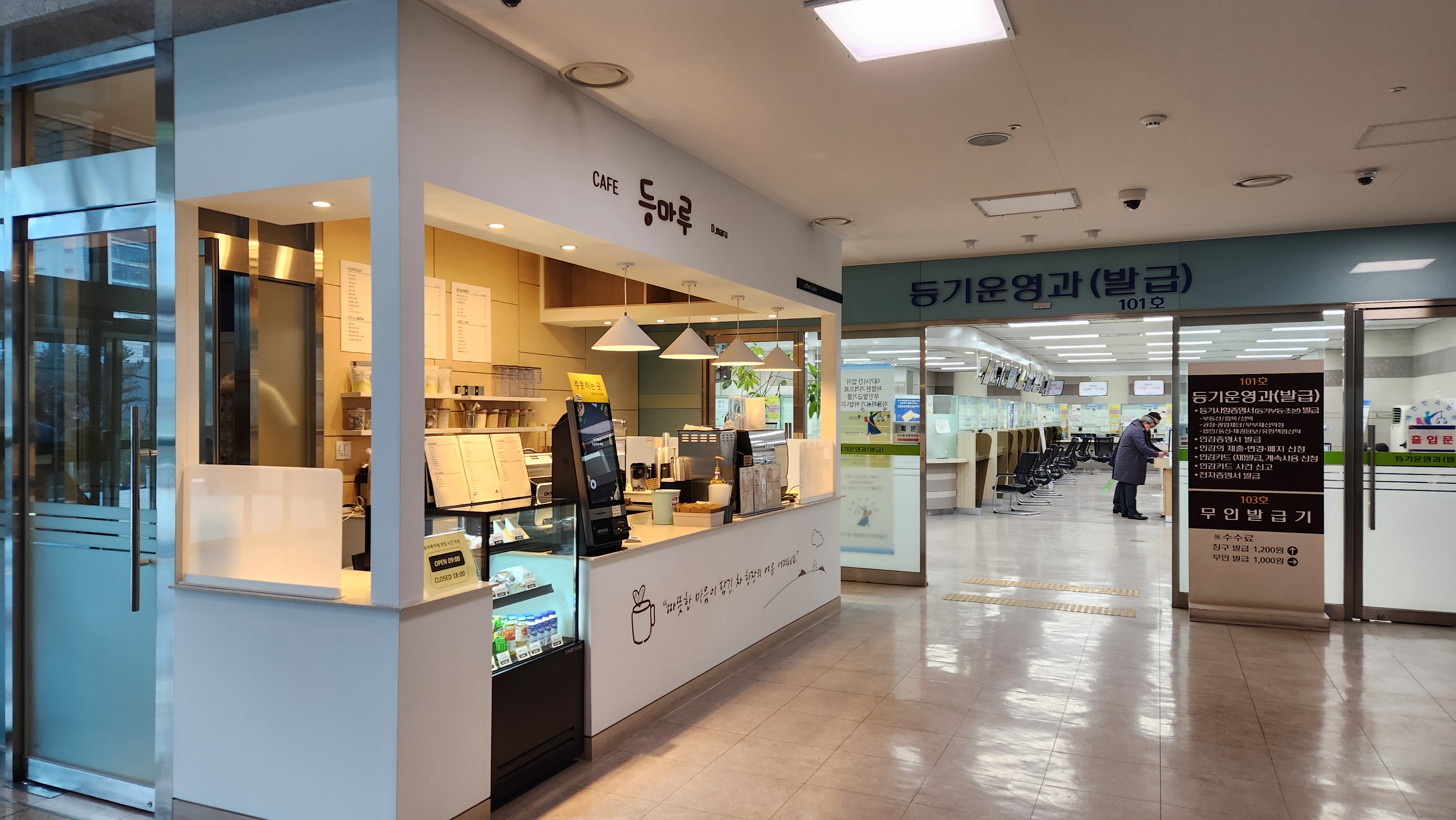 1층 입구로 들어가면 왼편에 카페와 등기운영과(발급)이 있고요