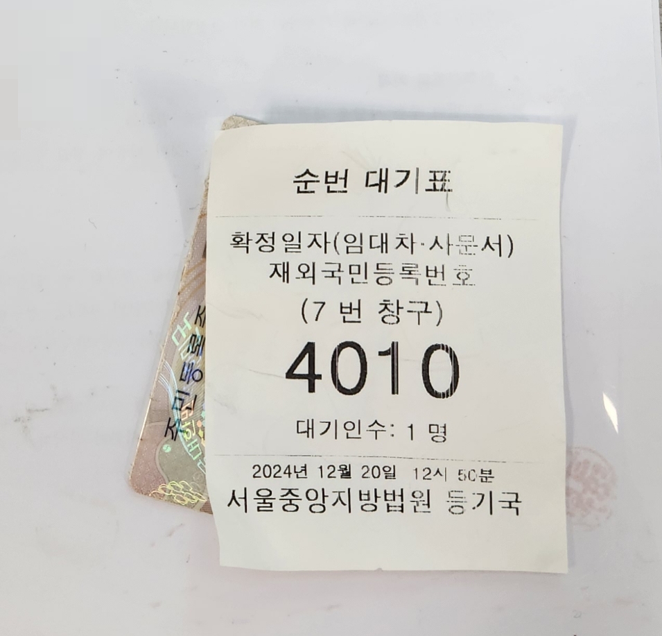 1층 104호로 되돌아가 앉아서 대기하다가 오픈하자마자 제일 먼저 가서 확정일자를 받았습니다.